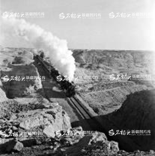 新疆图片库里,有一张1962年的老照片:一台蒸汽机车喷着浓浓白烟,拉着装满煤炭的车厢在百里风区呼啸而过——这是新疆铁路历史中的场景。