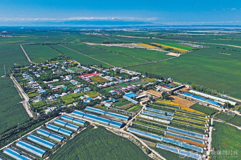 8月27日,航拍博乐市贝林哈日莫墩乡决肯村,该村是全国乡村治理示范村。初秋的决肯村愈发秀美灵动,处处呈现“环境美、产业兴、百姓富”的动人画卷。□赛永杰摄