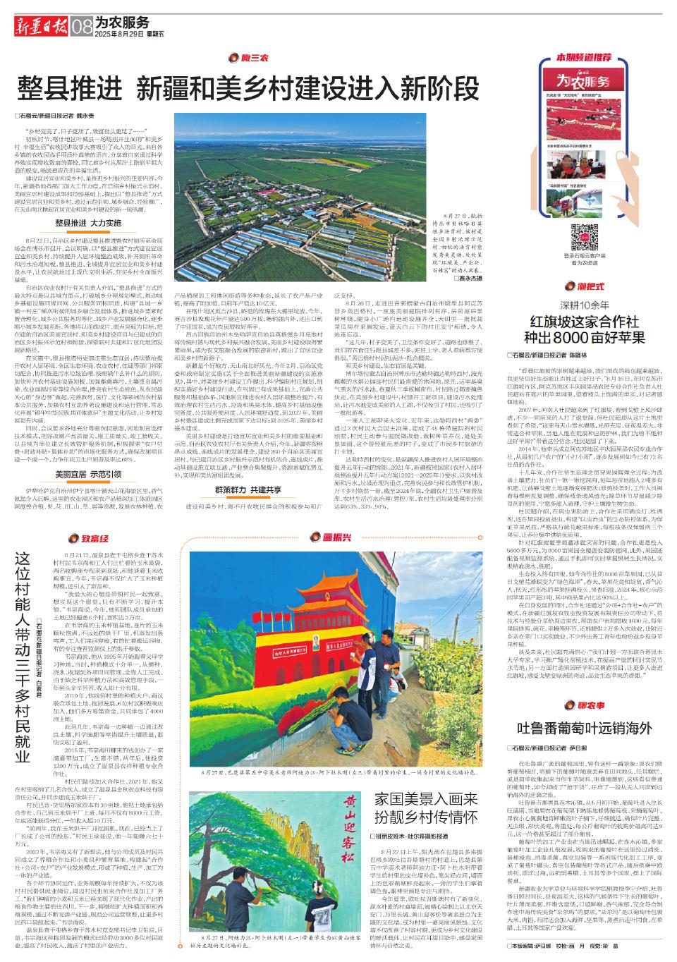 建设宜居宜业和美乡村,是推进乡村振兴的重要内容。今年,新疆各地各部门加大工作力度,在总结乡村振兴示范村、美丽宜居村建设成果和经验基础上,提出以“整县推进”方式建设宜居宜业和美乡村,通过示范引领、城乡融合、经验推广,在天山南北掀起宜居宜业和美乡村建设的新一轮热潮。