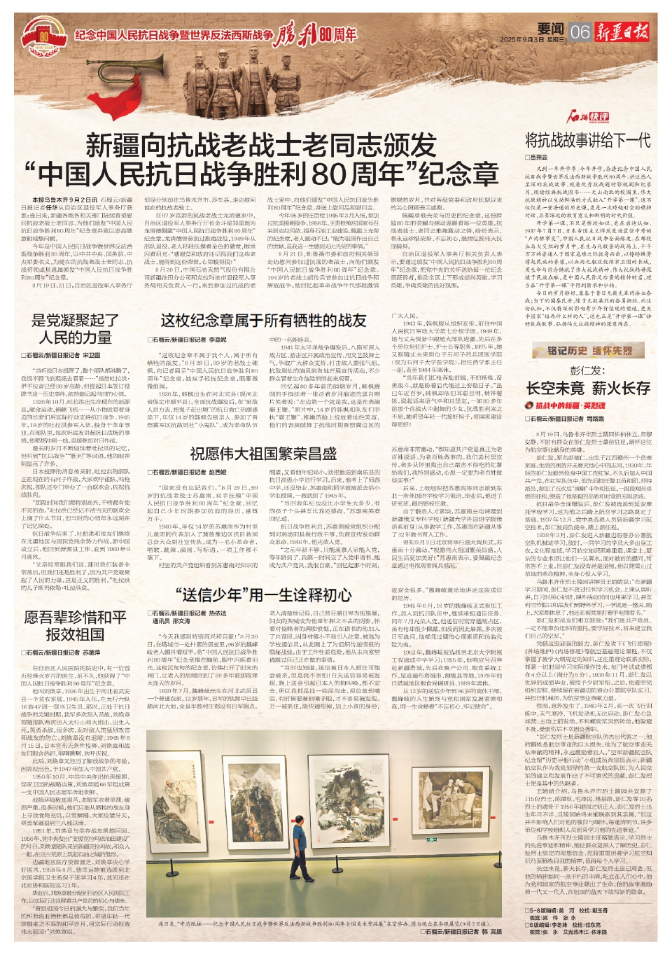 新疆向抗战老战士老同志颁发“中国人民抗日战争胜利80周年”纪念章