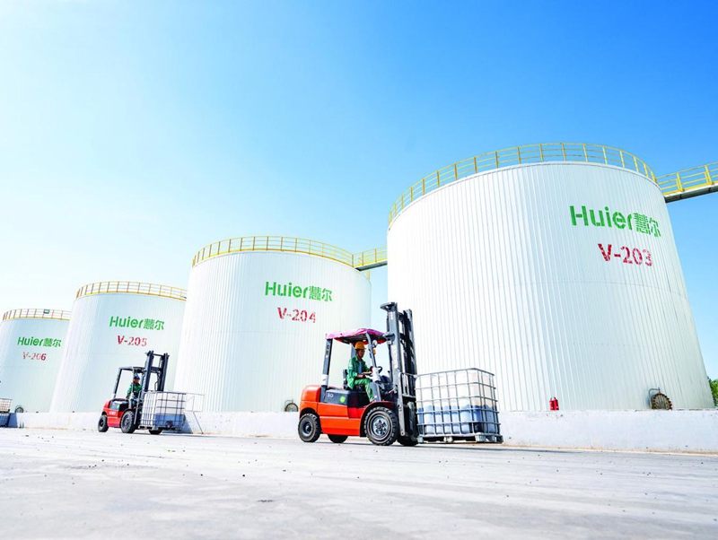 6月24日,昌吉国家农业高新技术产业示范区昌吉慧尔智联生态有限公司,员工用机械搬运液体肥。 □何龙摄