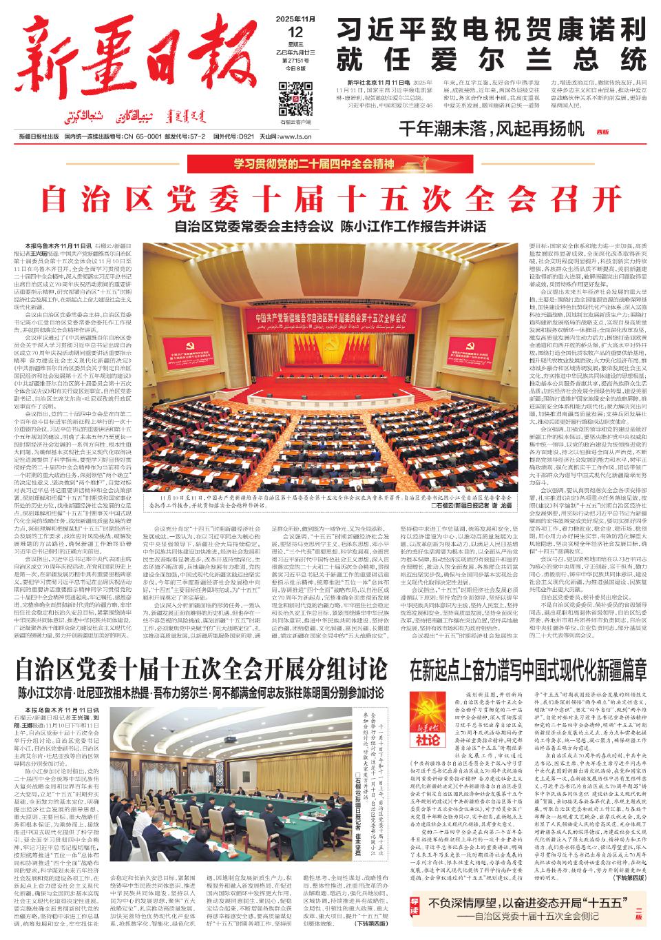 自治区党委十届十五次全会召开