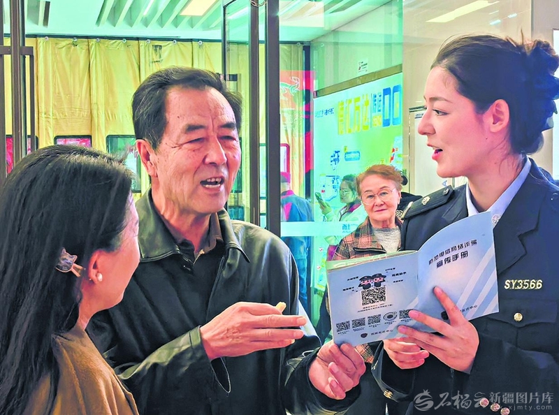 11月9日,乌鲁木齐市公安局沙依巴克区分局长江路街道派出所组织民警辅警深入辖区商超,开展反诈宣传活动。□石榴云/新疆日报记者单坤摄