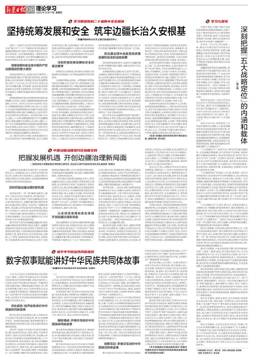 坚持统筹发展和安全 筑牢边疆长治久安根基