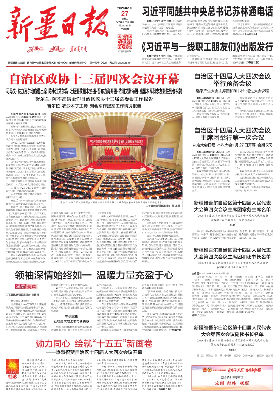新疆维吾尔自治区第十四届人民代表大会第四次会议主席团和秘书长名单