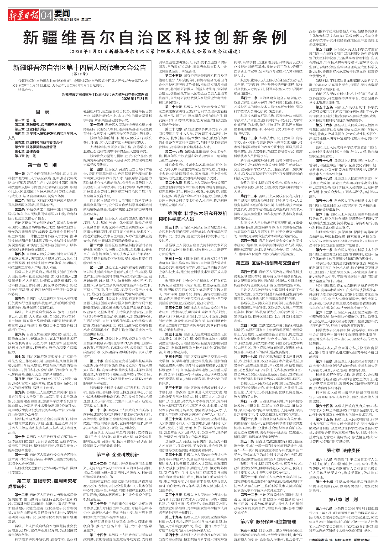 新疆维吾尔自治区科技创新条例