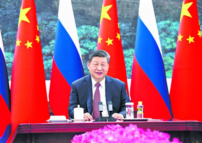 习近平表示,开年以来,国际形势愈发动荡。作为负责任大国和联合国安理会常任理事国,中俄两国有义务推动国际社会坚守公平正义,坚定捍卫二战胜利成果,坚决维护以联合国为核心的国际体系和国际法基本准则,携手维护全球战略稳定。