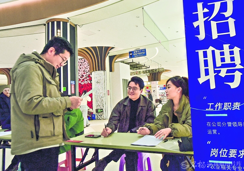 2月4日,求职者与用工单位工作人员交流。当日,库尔勒经济技术开发区2026年春风行动暨就业援助季专项招聘会火热进行,现场30多家企业参与招聘。□石榴云/新疆日报记者王立华摄