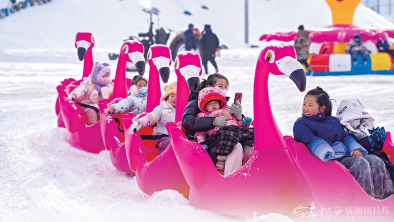 2月8日,在乌苏市田园印象冰雪乐园冰雪场,众多市民和游客纷至沓来,沉浸式体验雪圈、雪地摩托等冰雪运动。□李仁锡摄