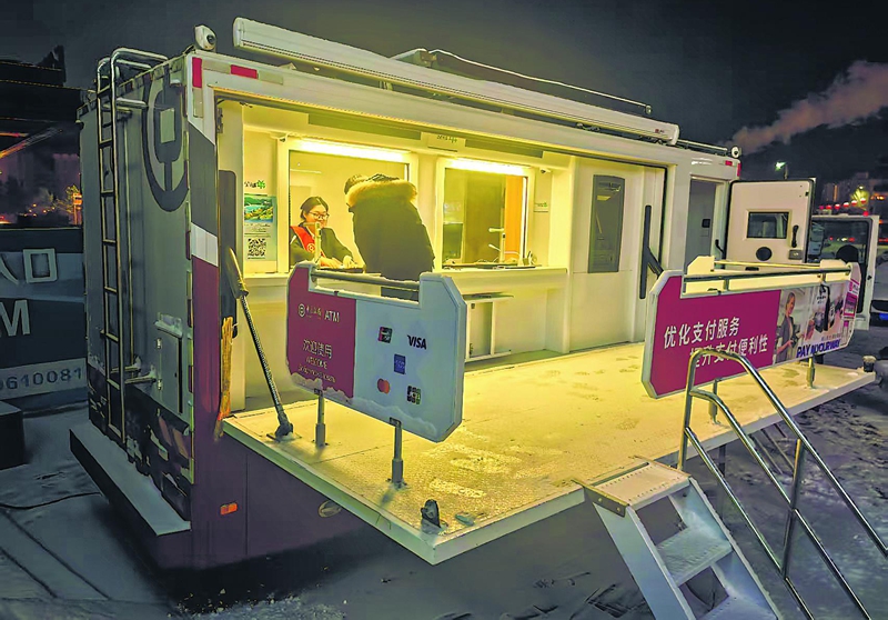 1月27日,中国银行阿勒泰分行调派流动金融服务车,将外币兑换服务直接送至参赛人员驻地。□姚秋萍摄