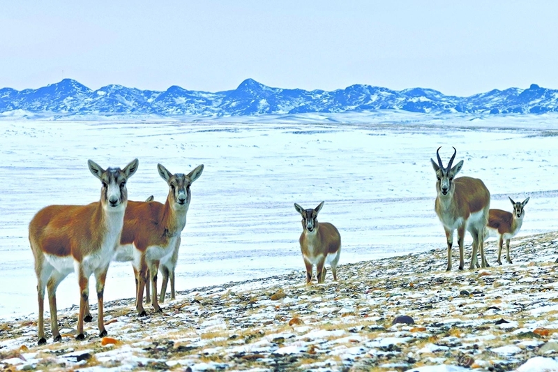 近日,在阿勒泰市沙吾尔山,一群鹅喉羚在雪坡上悠闲散步、觅食,为冬日雪原增添了生机。阿勒泰市持续加大野生动物保护力度,通过实施生态修复等措施,鹅喉羚数量逐年增加。□库奋·尼合买提摄