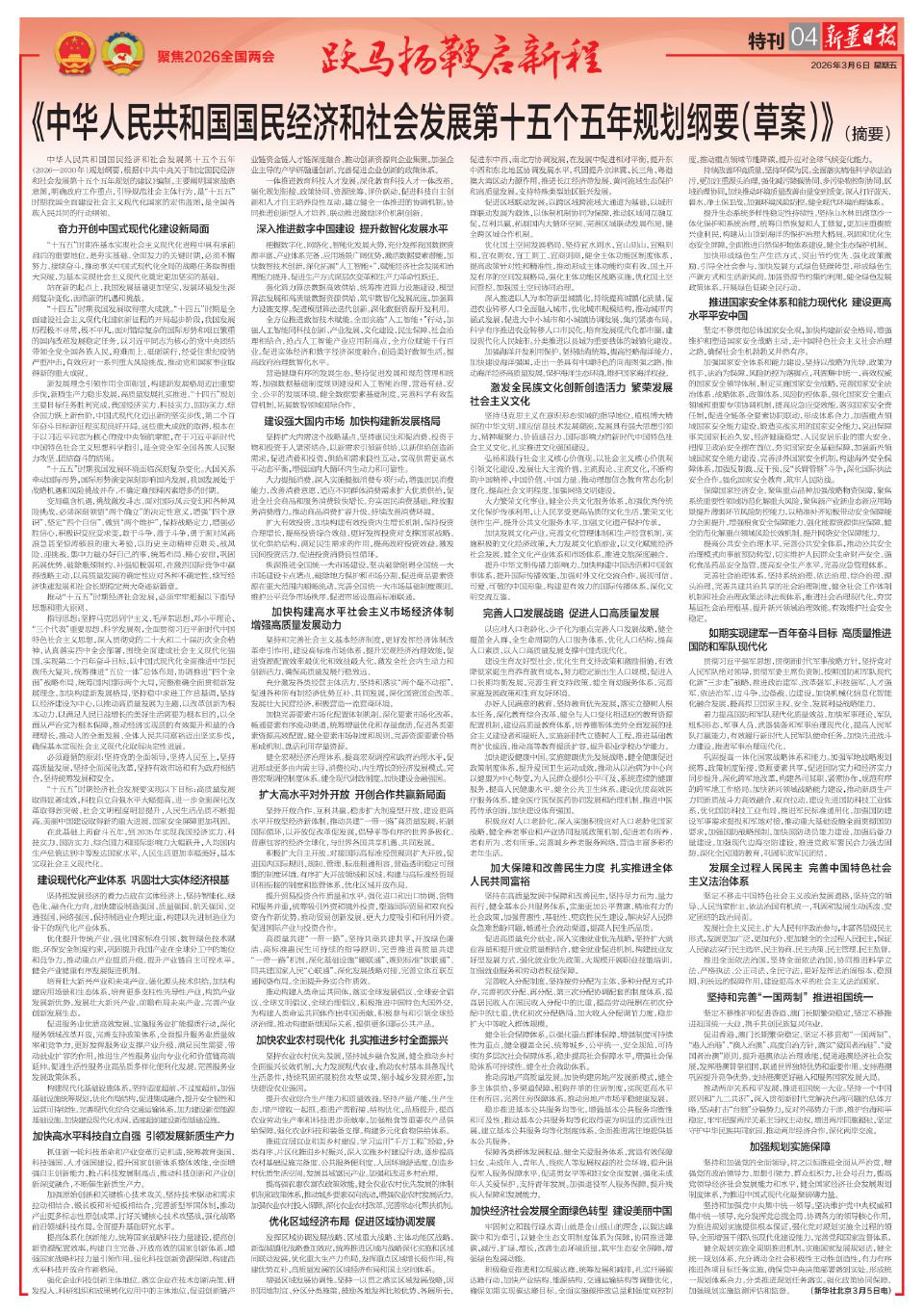 《中华人民共和国国民经济和社会发展第十五个五年规划纲要(草案)》