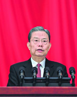 3月9日,十四届全国人大四次会议在北京人民大会堂举行第二次全体会议。受全国人大常委会委托,赵乐际委员长向大会报告全国人大常委会工作。□新华社记者饶爱民摄