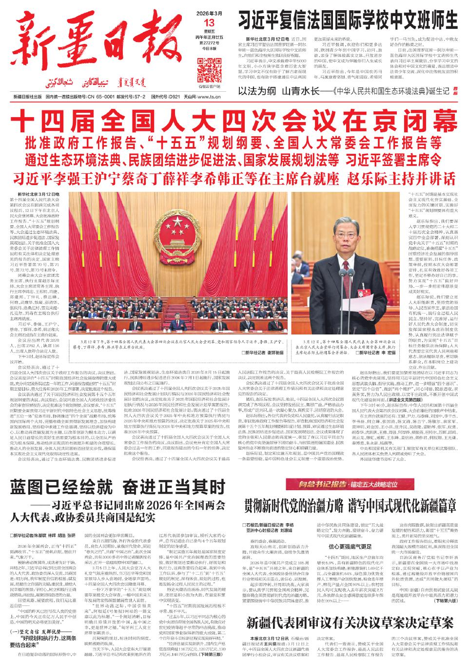 2026年3月12日下午,北京人民大会堂。十四届全国人大四次会议高票表决通过了《中华人民共和国生态环境法典》。