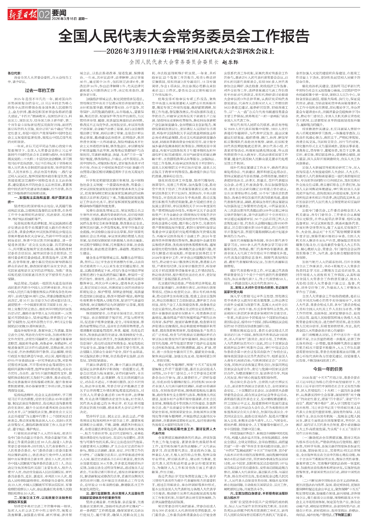 全国人民代表大会常务委员会工作报告
