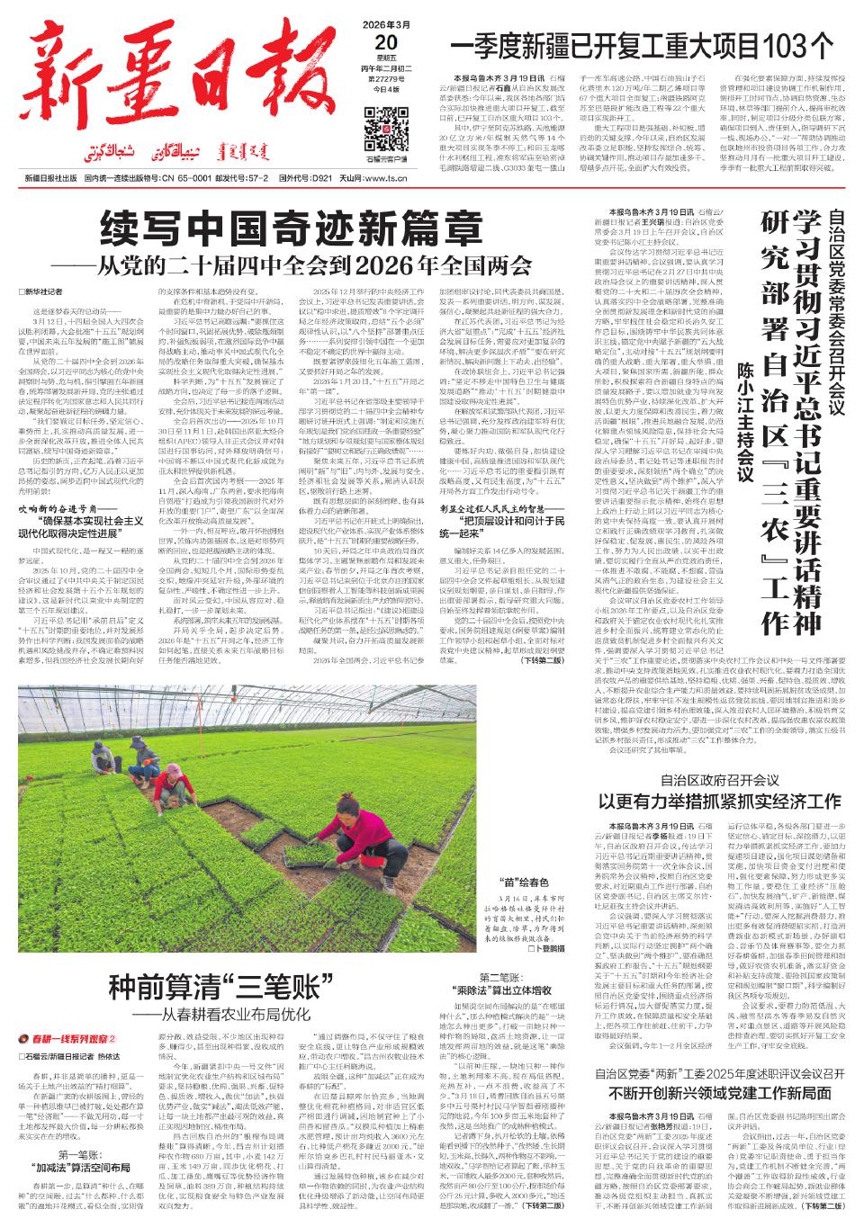 一季度新疆已开复工重大项目103个