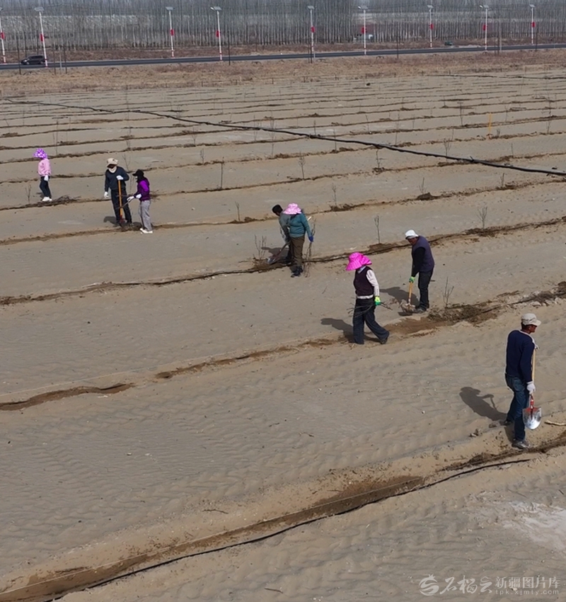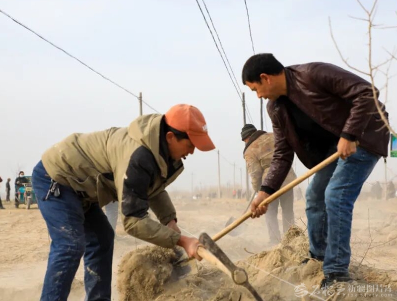 春季植树正当时,群众在于田县中药材种植示范基地周边植树。 □阿依奴尔·艾司卡尔摄