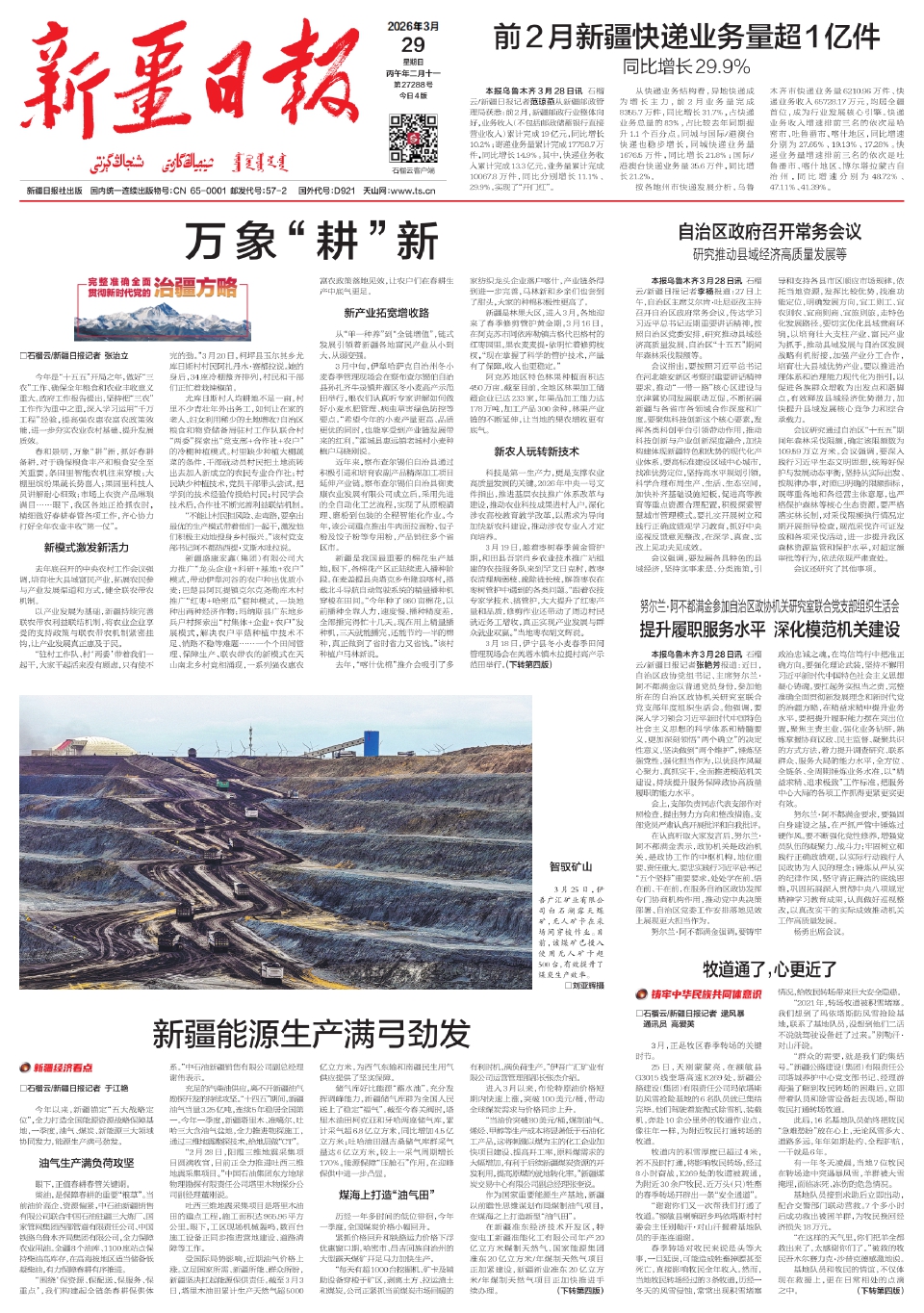 前2月新疆快递业务量超1亿件