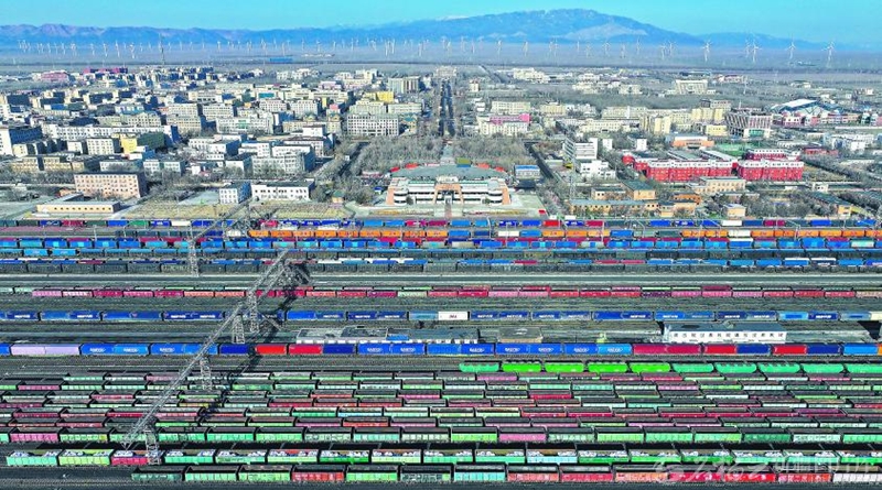 3月27日,在阿拉山口站编组场内,中欧(中亚)班列正在编组。截至3月26日,今年阿拉山口铁路口岸通行中欧(中亚)班列突破2000列,较去年提前19天。 □宋玉龙摄