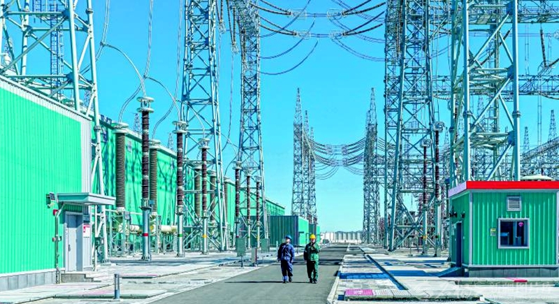 3月31日,工人在哈密—重庆±800千伏特高压直流输电工程巴里坤换流站巡检。该换流站自去年6月投产送电以来,已外送电量203亿千瓦时,有力保障了疆电外送通道稳定运行。 □钟卫亮摄