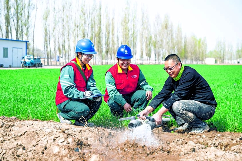4月10日,供电所员工在昌吉市榆树沟镇曙光村询问排灌设备供电情况。连日来,国网昌吉供电公司榆树沟供电所组织员工深入田间地头开展线路巡查,重点对农用配电线路、排灌设备进行排查消缺,确保春灌用电安全。 □何龙摄