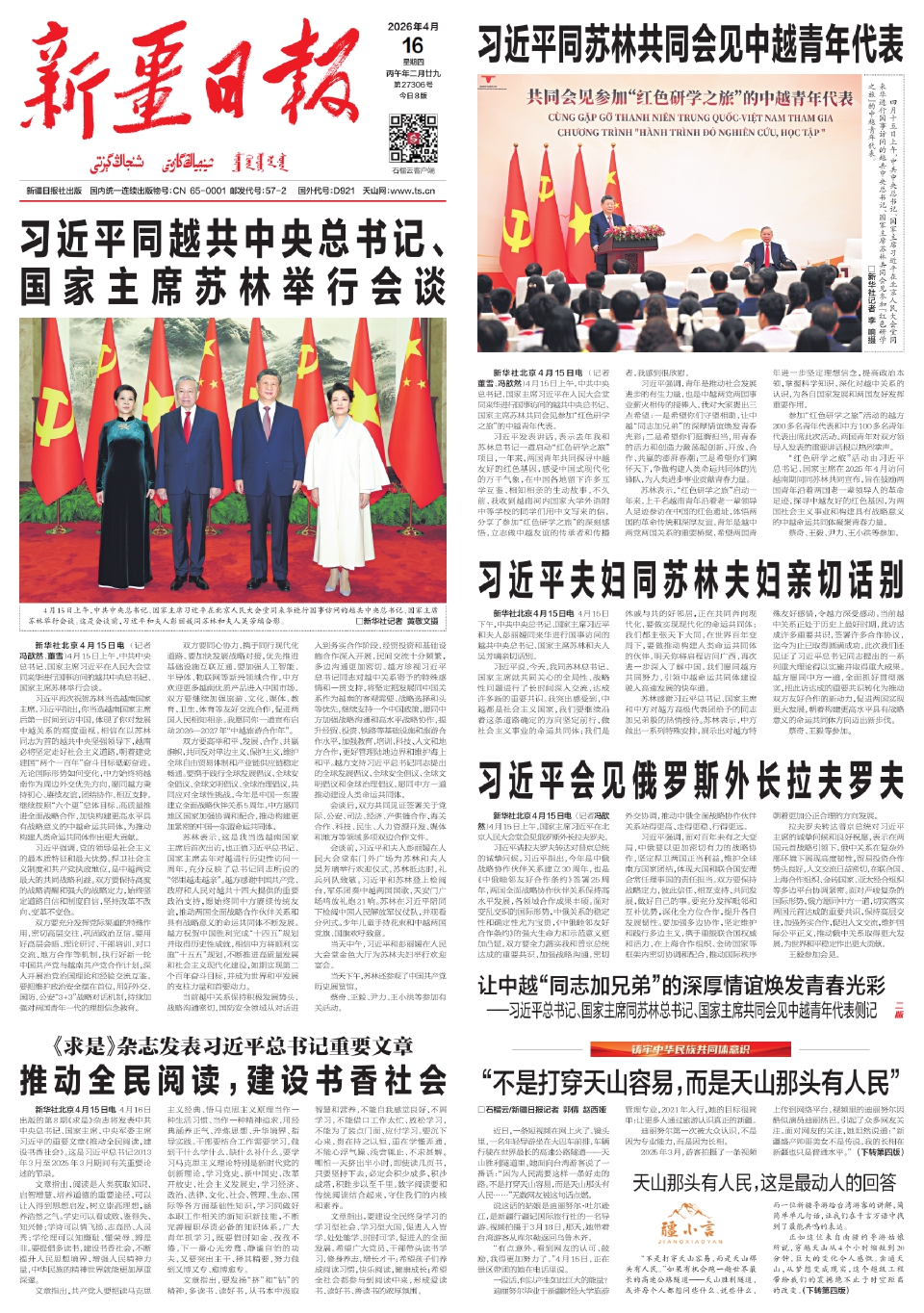 习近平同苏林共同会见中越青年代表