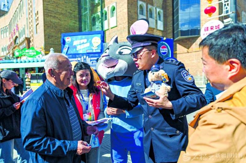 4月15日,普法志愿者在新疆国际大巴扎向市民和游客普及国家安全相关知识。 □孙振嵩摄