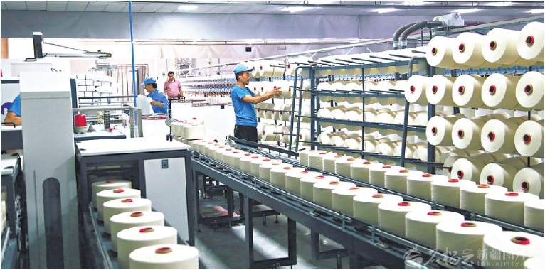 4月23日,工人在位于阿瓦提县阿瓦提镇库木巴格社区的新疆精一纺织科技有限责任公司纺织车间赶制订单。该公司聚焦技术创新,积极引入智能化生产线,产品向高端化、绿色化迈进,今年订单源源不断。□包良廷摄